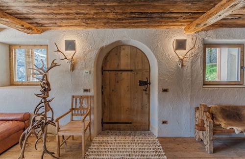 Inner spaces of Cesa del louf has been studied in every detail. The renovation was carried out with a careful attention to the recovery and processing of the original materials of the building. The holes left by the studded shoes of the local peasants and the number of other signs embedded on the chalet by human passage in the past are here mixed with the old woods, the scratches and the holes that time has left on floors and walls, and on the ancient stones with their deep fissures and vibrant burnt colours. Elements that today dominate the renovation both inside and outside, giving the chalet a typical and welcoming atmosphere